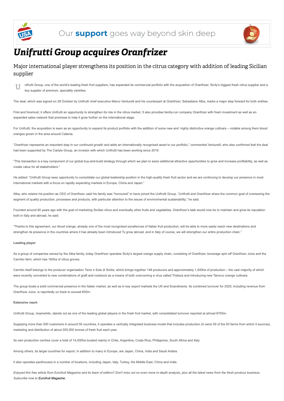 We urge anyone to exercise extreme caution, should you receive suspicious communications or encounter any other activity purporting to be from or representing Unifrutti.